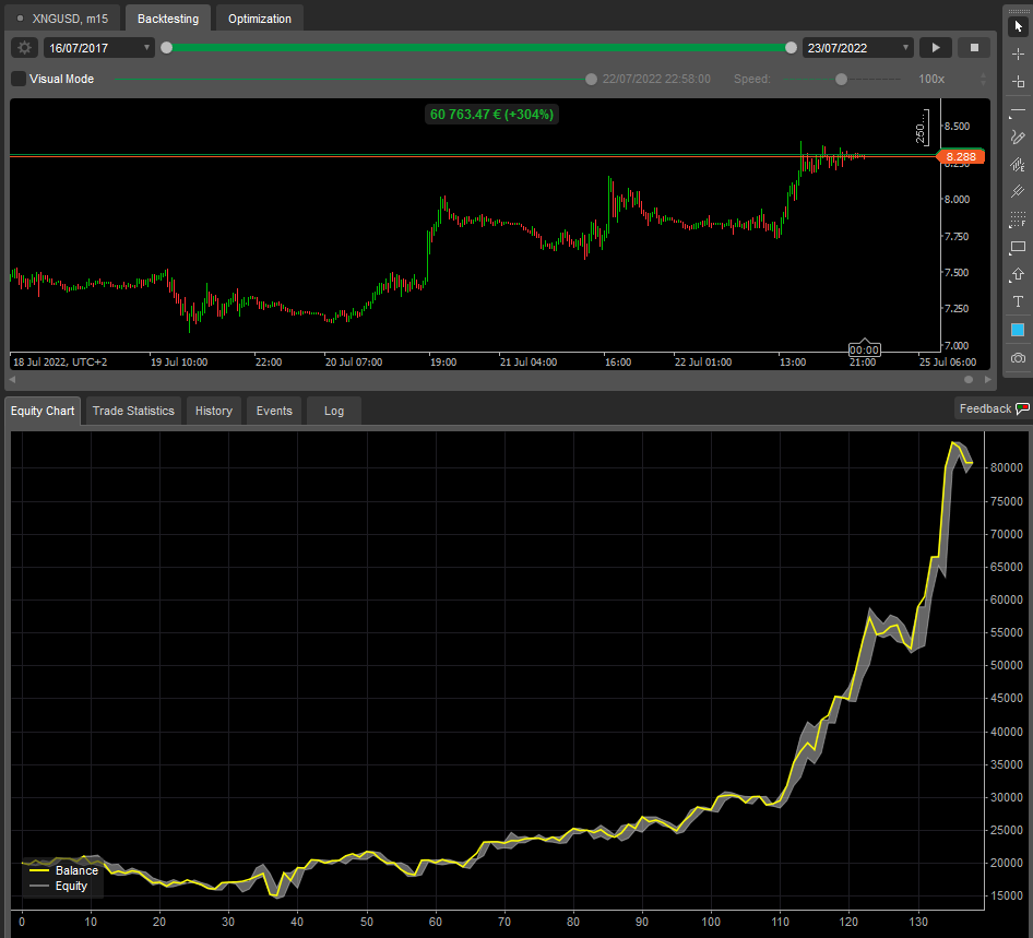 cBot can be set as Reverse or Breakout strategy, the optimization will indicate the best strategy for each particular Currencies Cross, indices, Metals, Crypto Currencies.