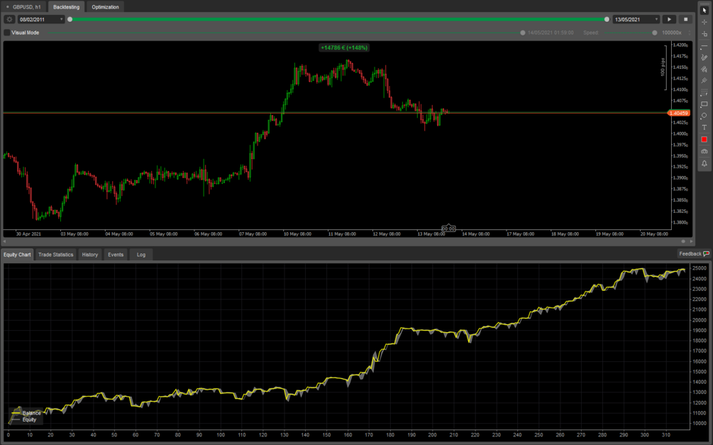 - Parameters have been optimized using IC Markets Broker from 08/02/2011 to 15/05/2021 (In some parameters the Drawdown is higher then10% because it was worth pushing on the Money Management).
