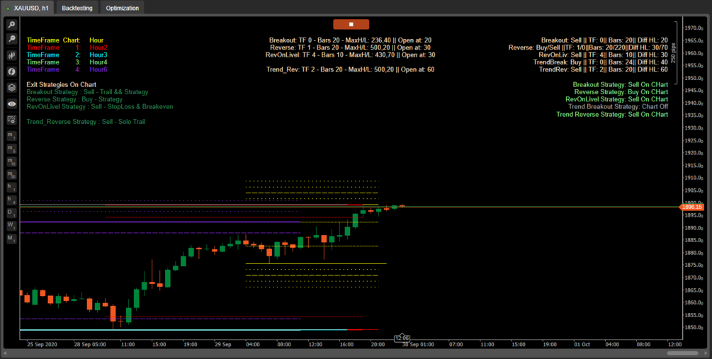 Multi TimeFrame program uses 5 different strategies based on supports and resistances by calculating the maximum and minimum prices on a certain number of bars on 5 different Timeframes.